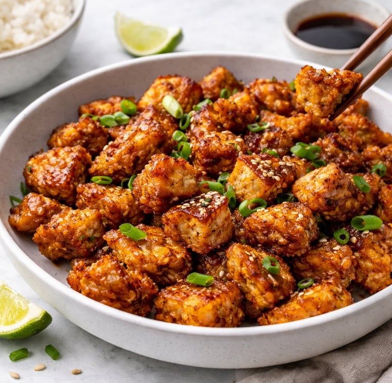 Crispy torn tofu with a flavorful marinade and golden crust. A simple, delicious plant-based protein for bowls, noodles, or salads.