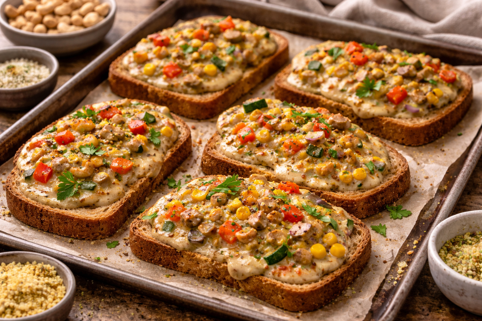 Easy Baked Vegetable Toasts with Cashew Sauce